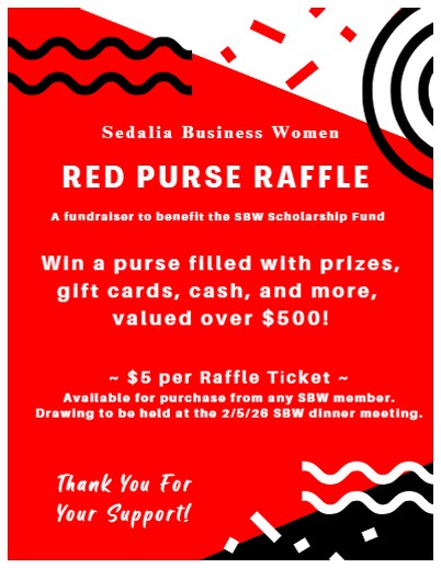 The SBW Red Purse raffle has raised funds for scholarships since 2008. The Foundation Committee holds the raffle annually in February. The purse contains a minimum $500 value in prizes, and the Members Only Clutch will hold a minimum of $200. At the same time, a silent auction raises funds for Business Women of Missouri scholarships.